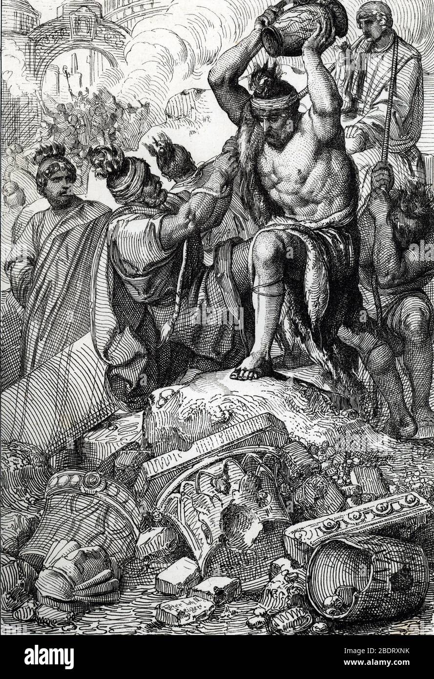 Les attaquants aghlabides semblent avoir connaissance des trésors romains extraordinaires. Certaines basiliques, comme l'ancienne basilique Saint-Pierre se trouvent à l'extérieur du mur d'Aurélien : ce sont donc des cibles faciles. La basilique Saint-Pierre est défendue par une garnison de soldats composée de Francs, de Lombards, de Saxons et de Frisons qui, malgré une résistance acharnée, sont exterminés. Les basiliques visées sont « remplies à ras bord de riches vases liturgiques et de reliquaires parés de bijoux récemment amassés ». En conséquence, les envahisseurs pillent les lieux saints, y compris la basilique Saint-Pierre. Les historiens contemporains pensent que les voleurs savent exactement où chercher les trésors les plus précieux.