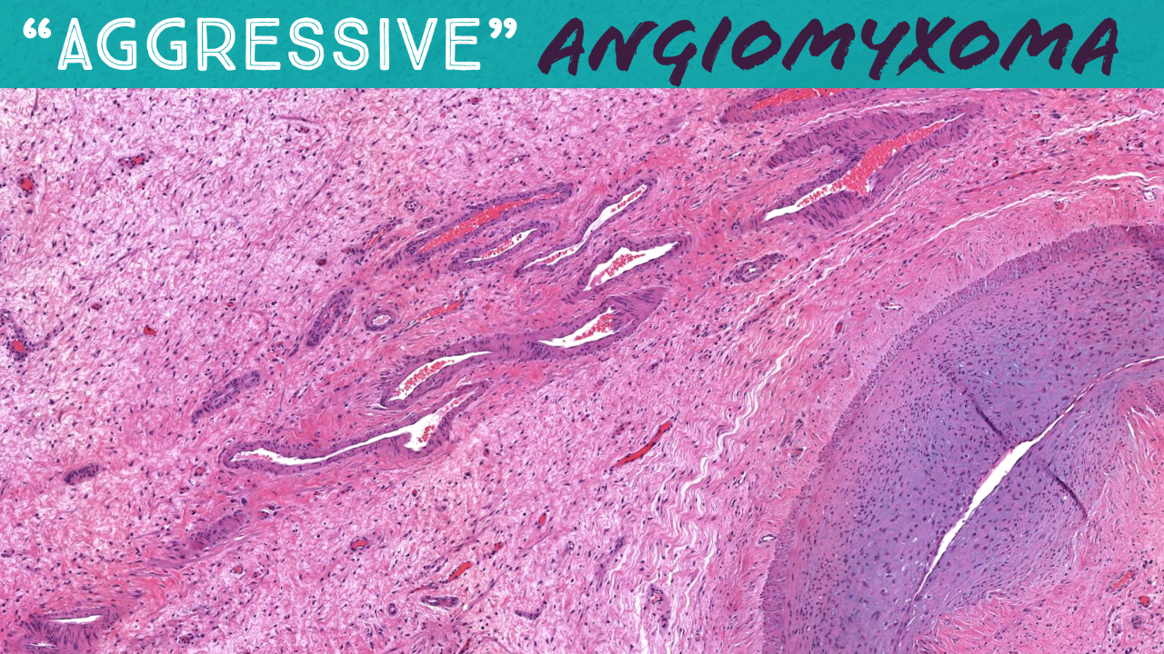L'angiomyxome agressif est une tumeur myxoïde impliquant les vaisseaux sanguins. Il peut affecter la vulve et d'autres parties du bassin.